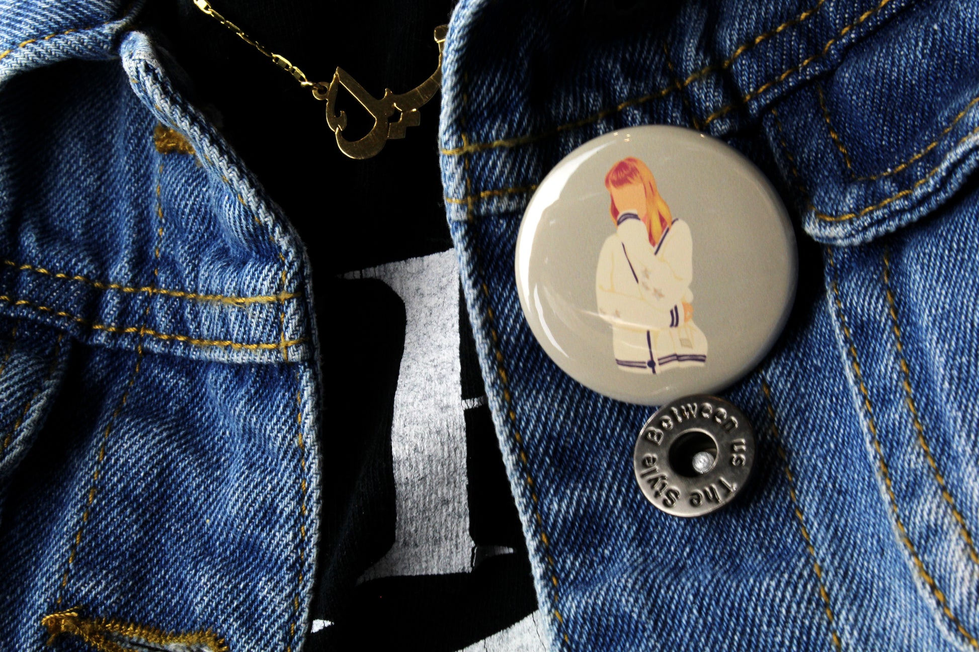 Taylor Swift folklore cardigan photo inspired 1.5'' pinback button.